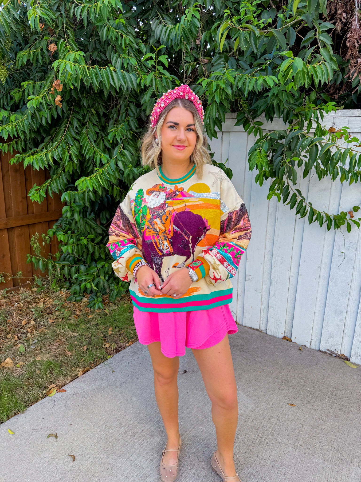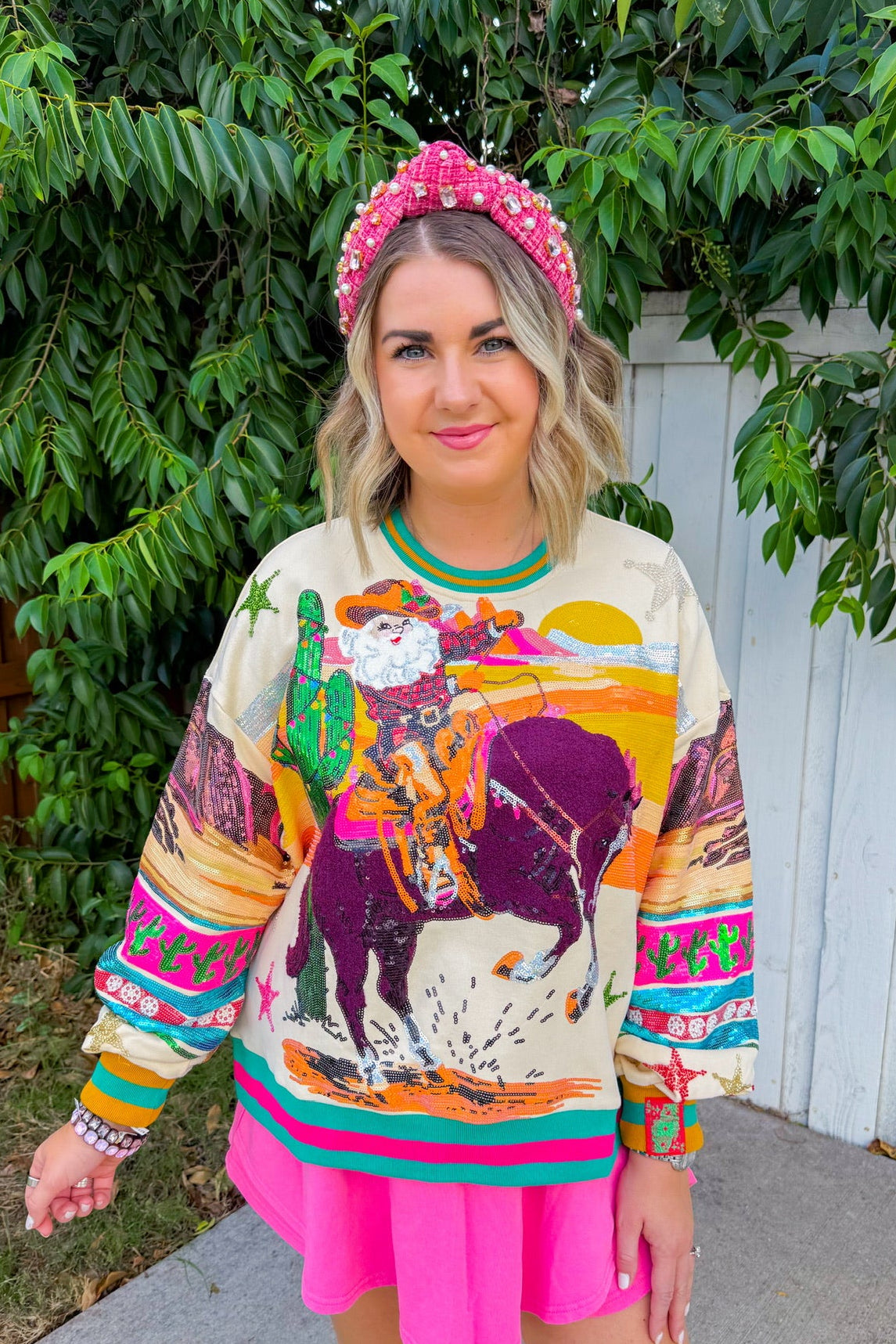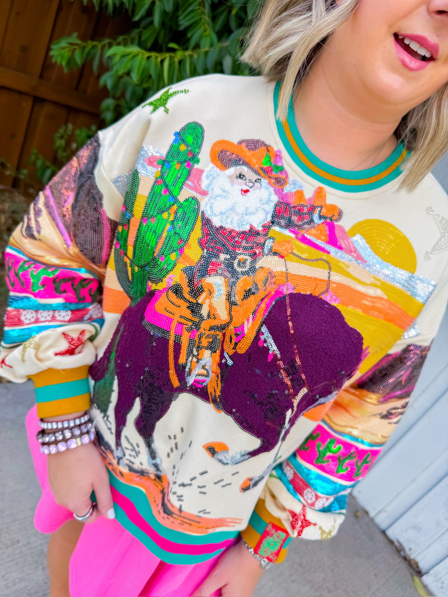 Featuring a colorful, retro-style Santa riding a horse, it's perfect for those who love holiday fun with a touch of western flair.