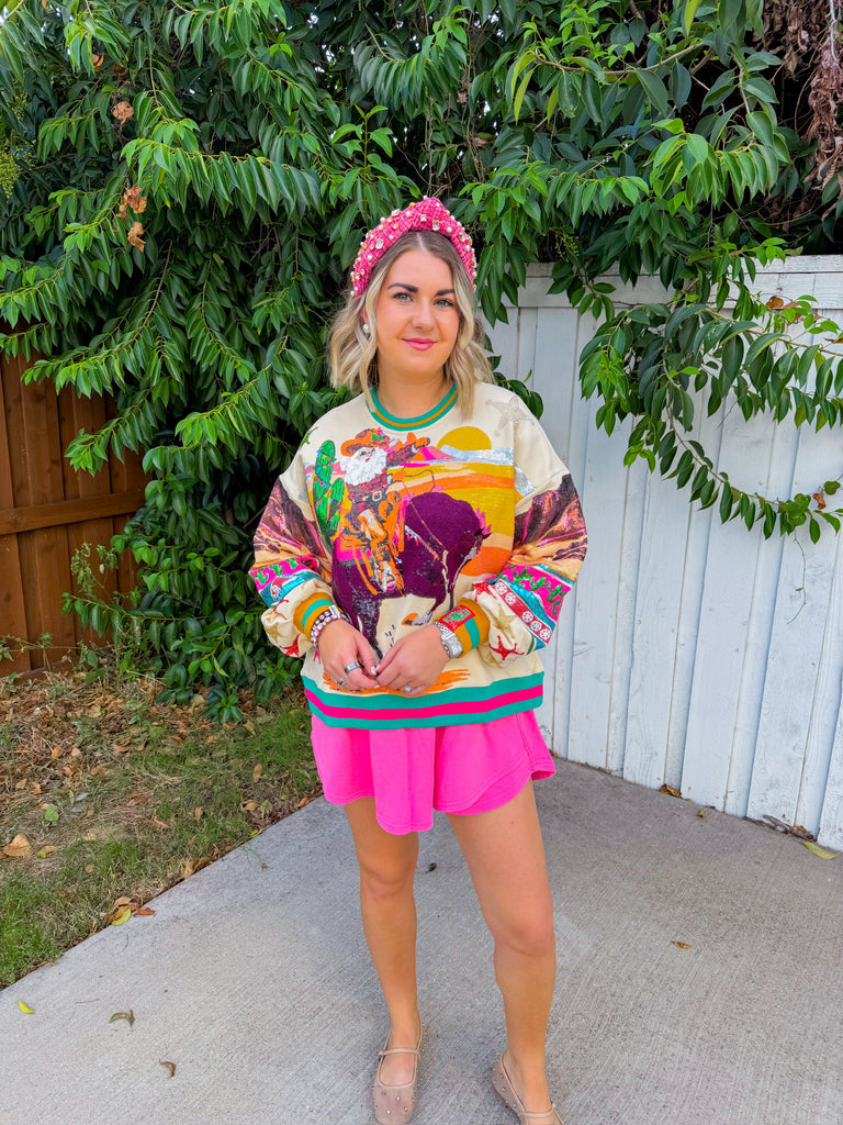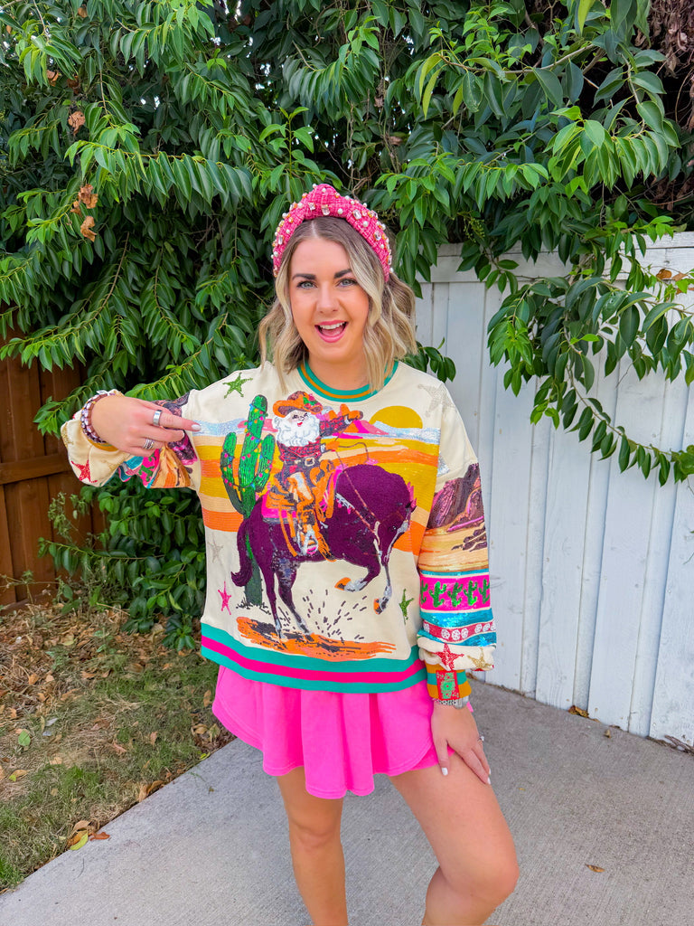 Vintage Cowboy Santa Sweatshirt - Multi