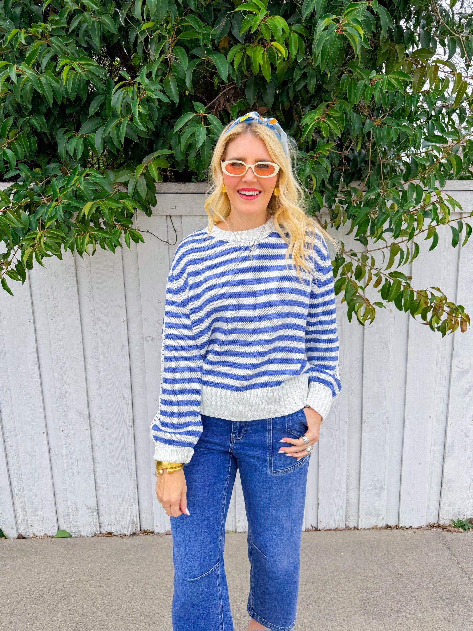 West Palm Beach Sweater - Off White/Blue