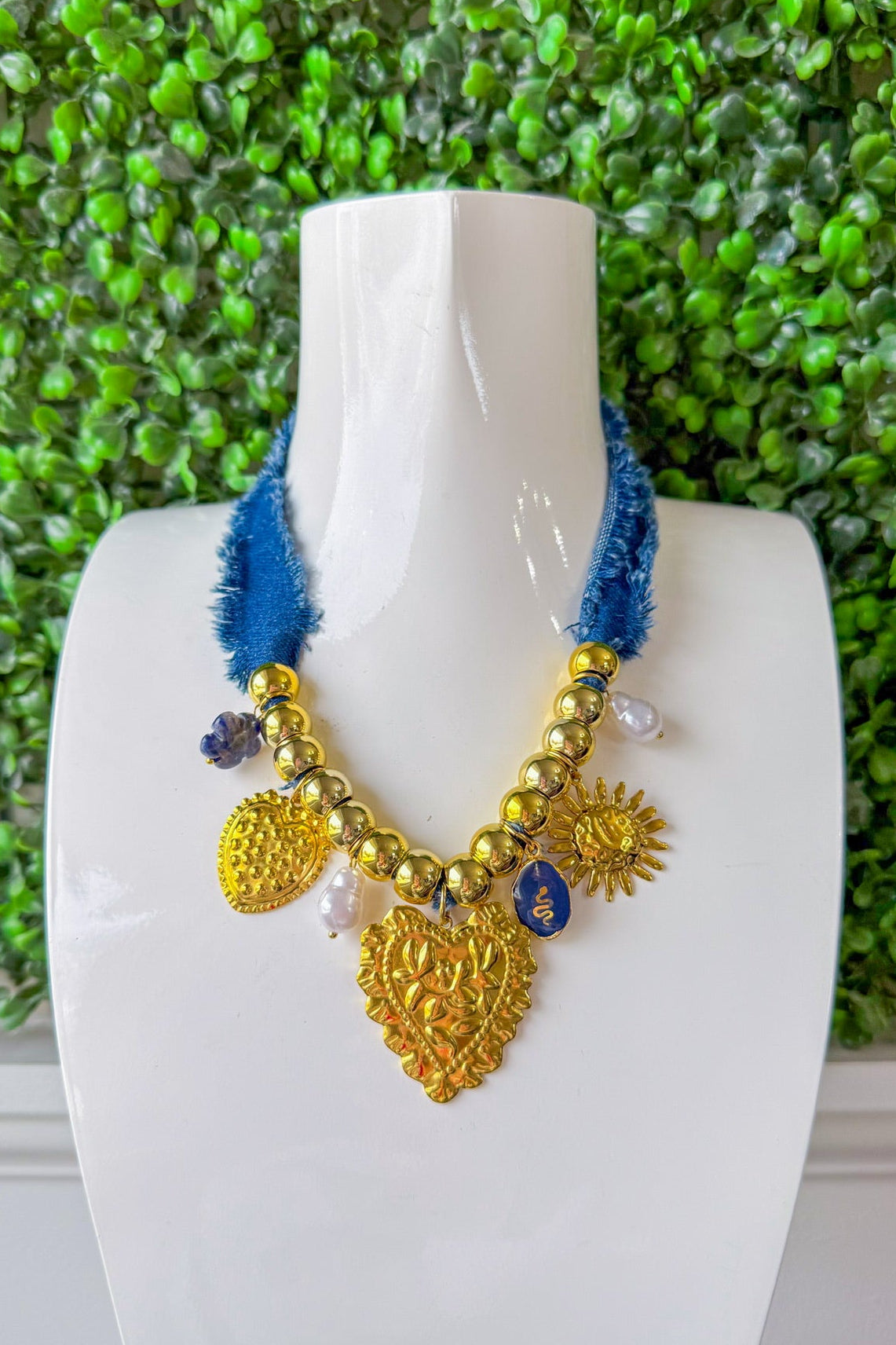 Worth The Trip Necklace - Denim/Gold