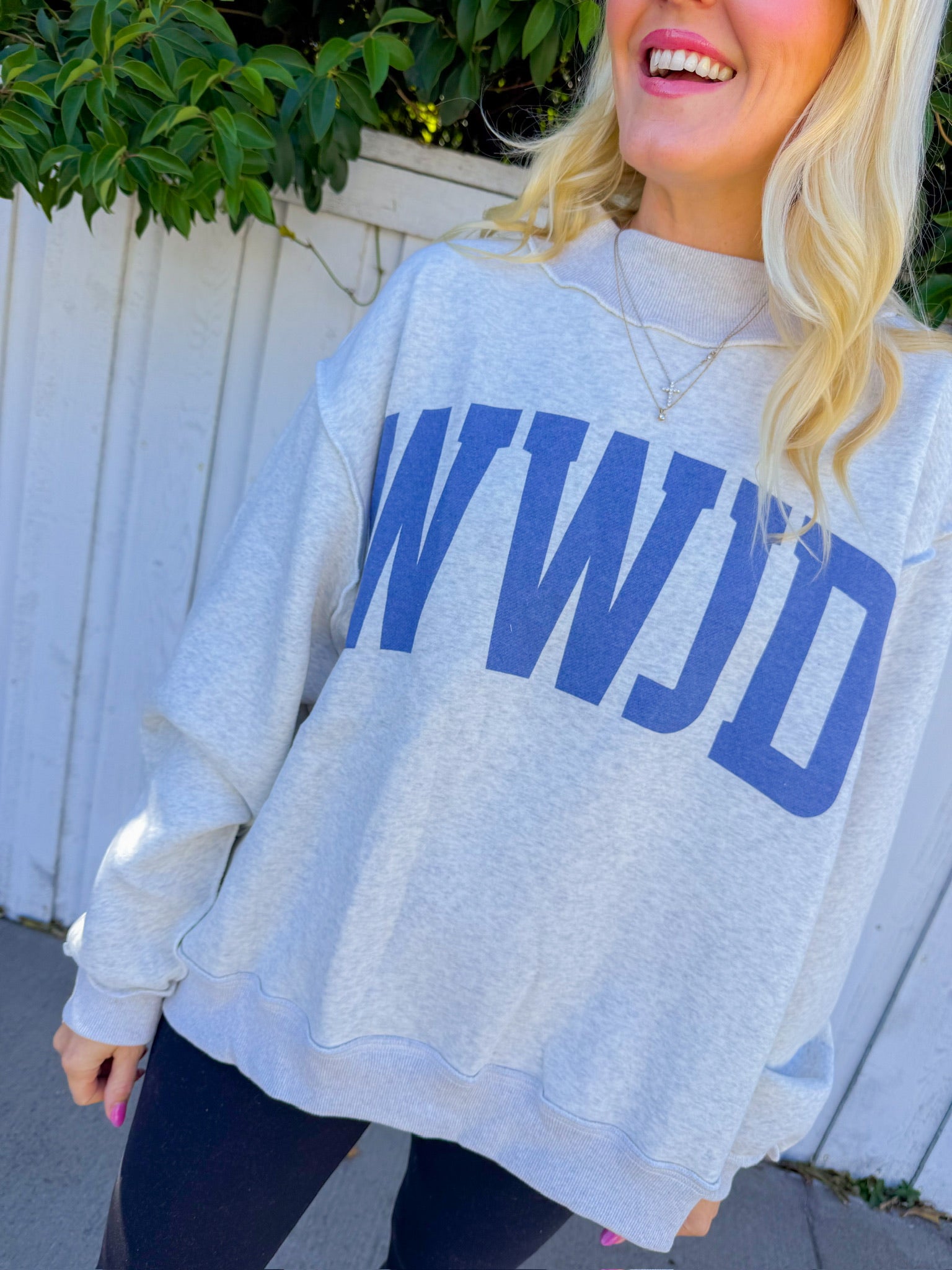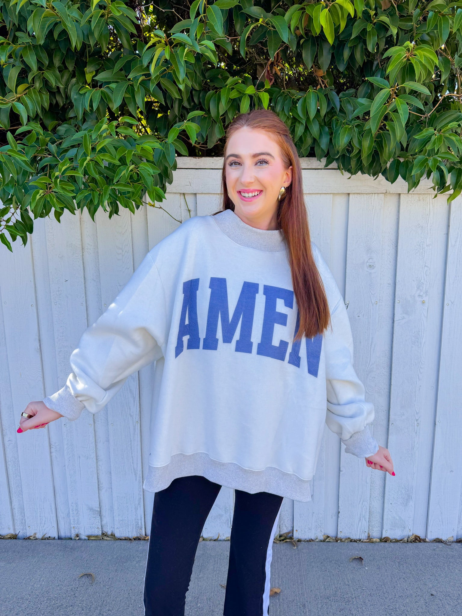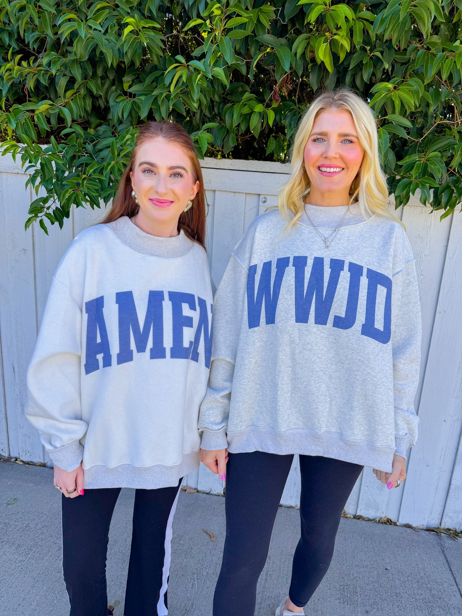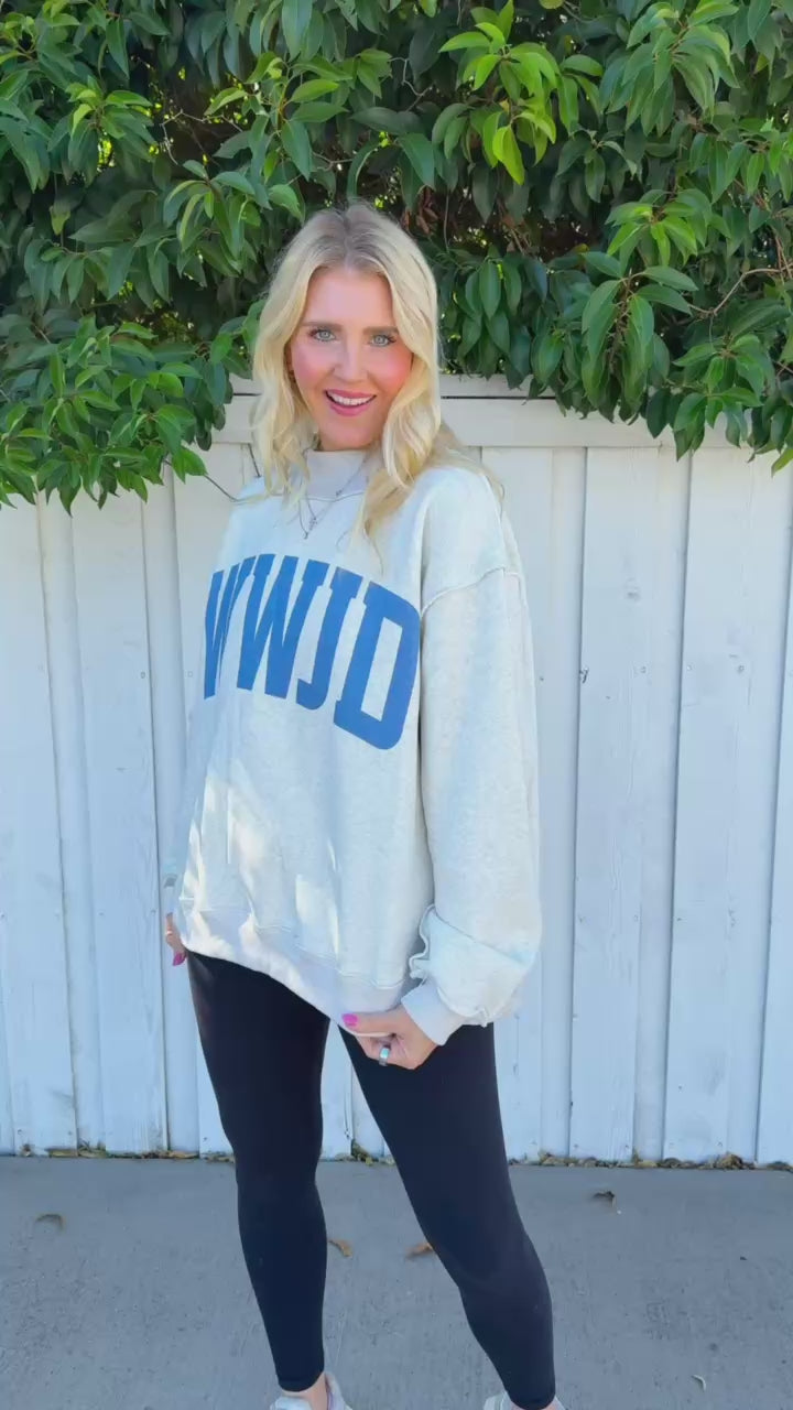 Double the meaning, double the wear. This oversized heather grey sweatshirt flips between WWJD and AMEN—ask the question on one side, find your answer on the other. The relaxed mockneck silhouette and generous fit make it ideal for layering or wearing solo. Spiritual wit wrapped in cozy comfort.